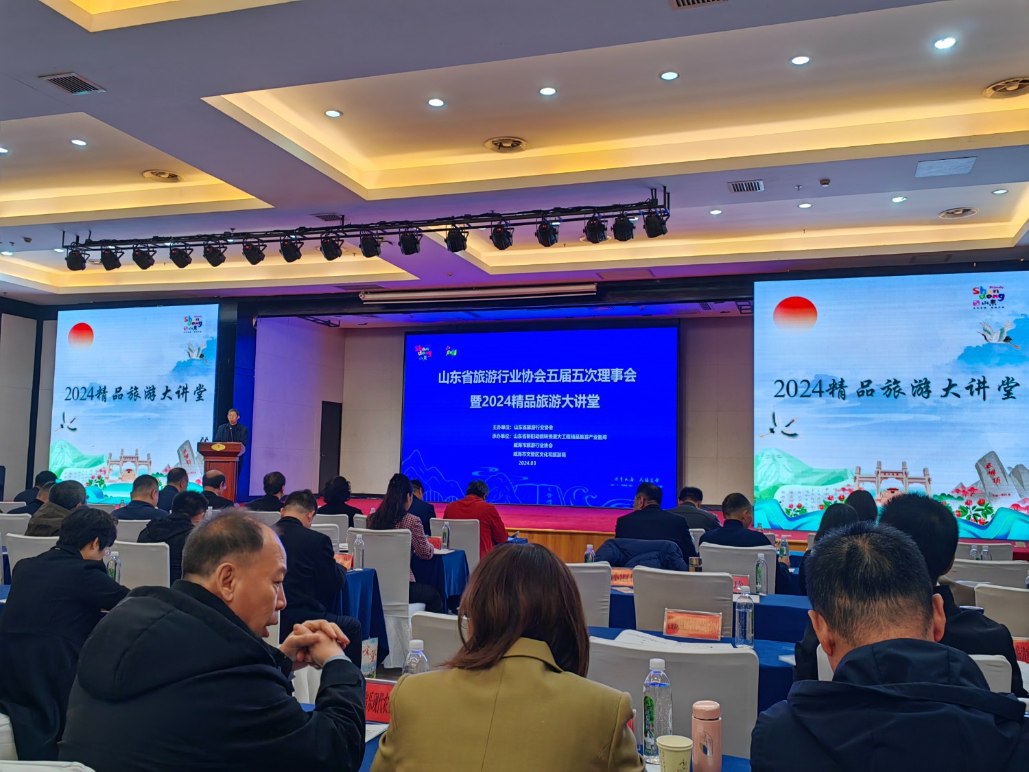 2024-4-32024年3月15日,山东省旅游行业协会五届五次理事会暨2024精品旅游大讲堂在威海市文登区天沐温泉度假区隆重召开。威海市文化和旅游局党组成员、副局长金连芳,威海市文登区人民政府党组成员、副区长顾甜甜,威海市文登区文化和旅游局党组书记、局长于海清等领导嘉宾出席会议,到会祝贺。山东省旅游行业协会会长王德刚,副会长吴凯、姜文一、王美香、宋其涛、张善久、邱家刚、谢英民、周辰、邓文军,监事孙平,各市旅游协会和各专业分会负责人,以及常务理事、理事、监事、获奖单位代表和个人、有关合作单位和媒体记者等200余人参加了会议。会议由山东省文化和旅游厅社会组织党委委员、省旅游行业协会副会长兼秘书长尚玉轩主持。