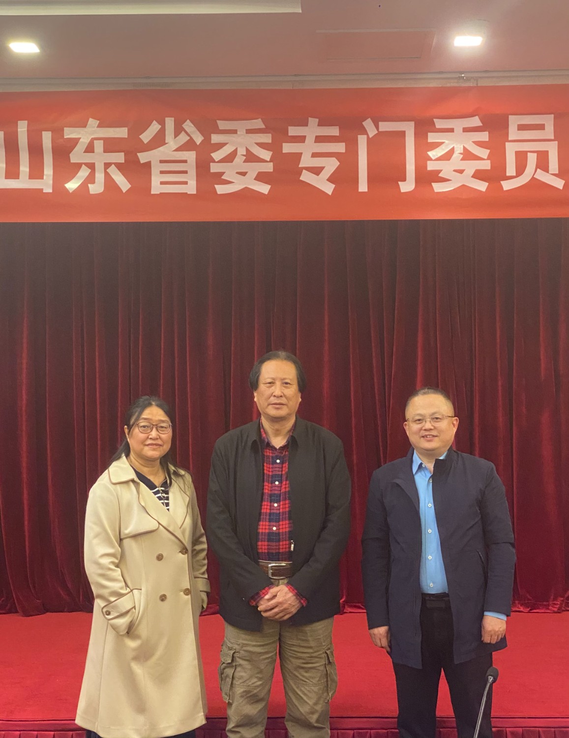 社省委参政议政部部长刘海娟通报2023年参政议政调研成果转化使用情况,十个专门委员会负责人依次汇报了2023年工作开展情况及2024年工作计划的发言,傅绍相代表文化艺术专委会作了汇报。山东省政协副秘书长、九三学社山东省委员会专职副主任李宗涛出席会议并做了重要讲话,期间参会的各专门委员会负责人进行了座谈交流。临朐籍老乡“中德栋梁集团有限公司”董事长蒋作栋、“山东财经大学金融学院”教授马建春与中国工艺美术大师傅绍相合影留念。