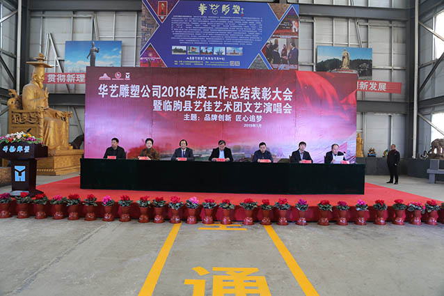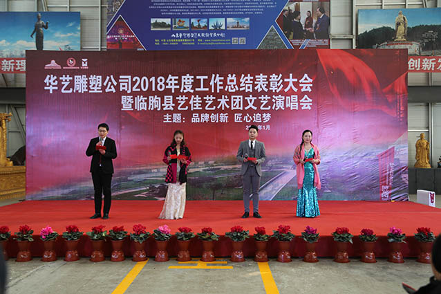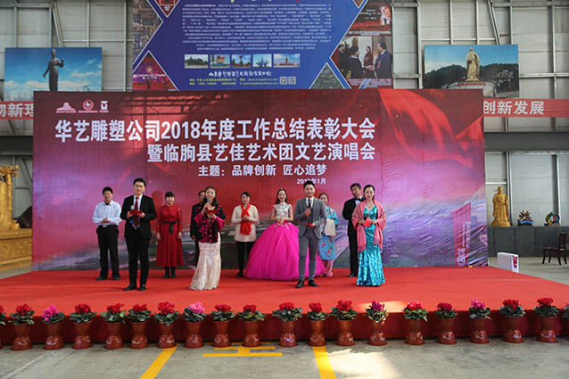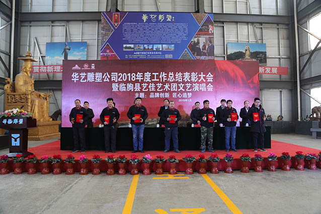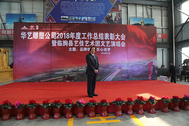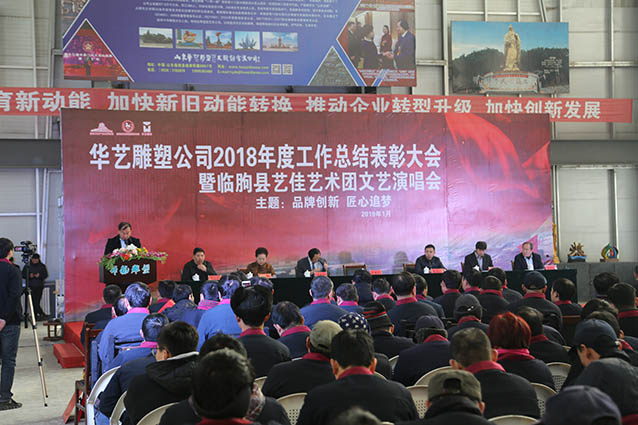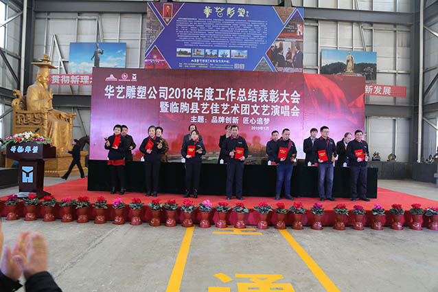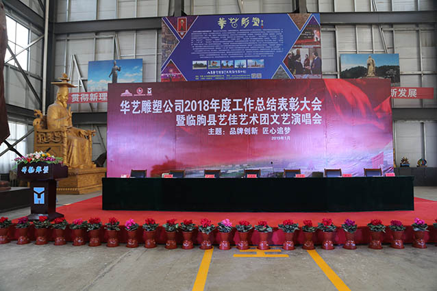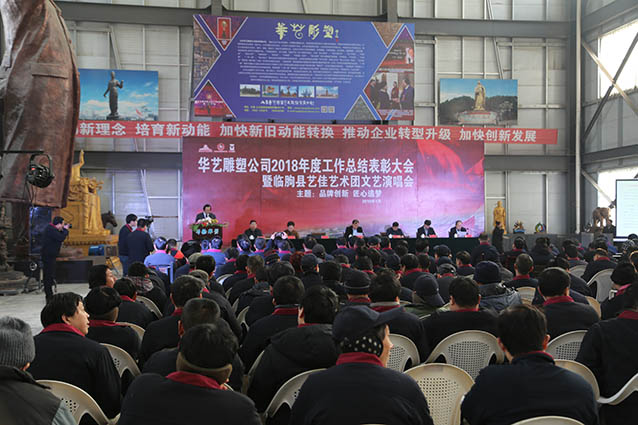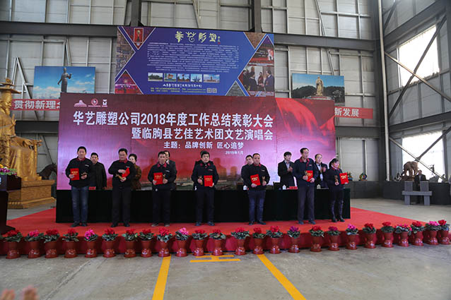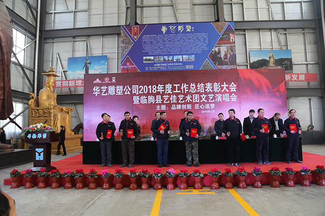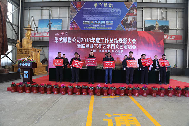 2019年1月10日,华艺安博买球公司2018年度工作总结表彰大会暨临朐县艺佳艺术团文艺演唱会,在华艺安博买球造型车间隆重举行,临朐县城关街办党工委副书记尹德忠、副主任张铭钦等领导参加,傅绍相董事长做了“品牌创新·匠心追梦”的2018年工作报告,会议中对先进集体、先进个人、华艺工匠进行了表彰和奖励,临朐县艺佳艺术团演出了精彩的文艺节目。大会在欢歌笑语中闭幕。