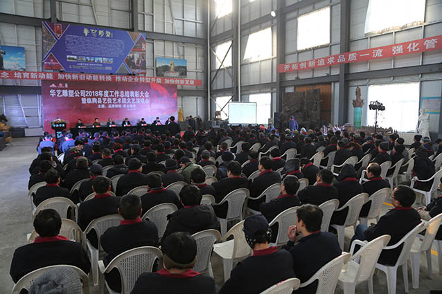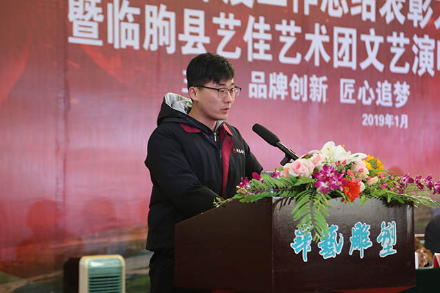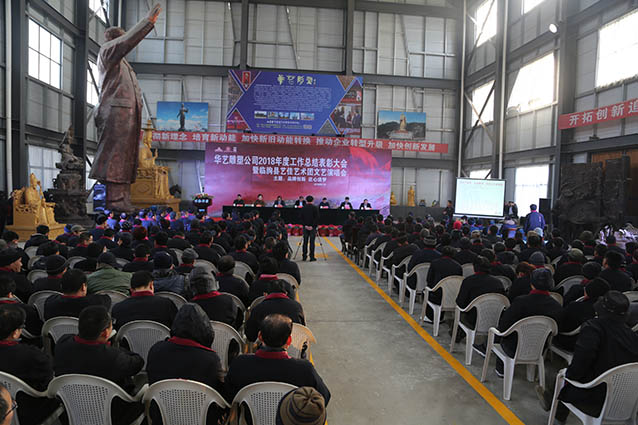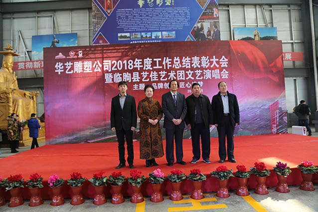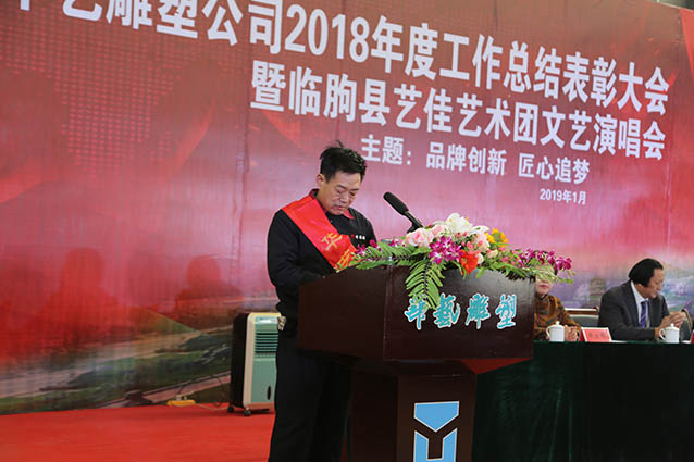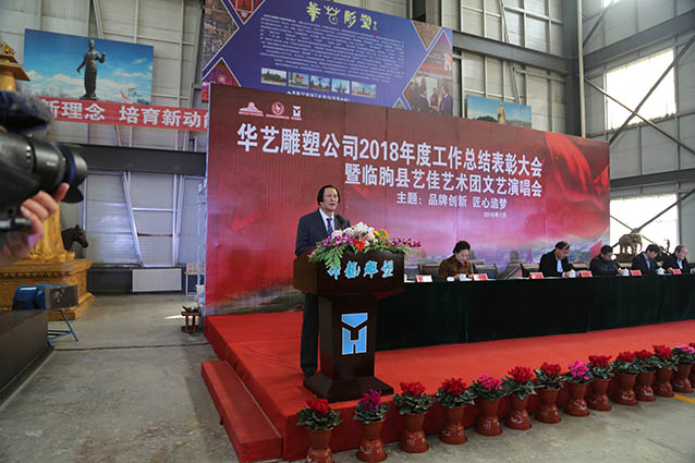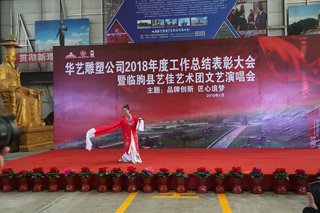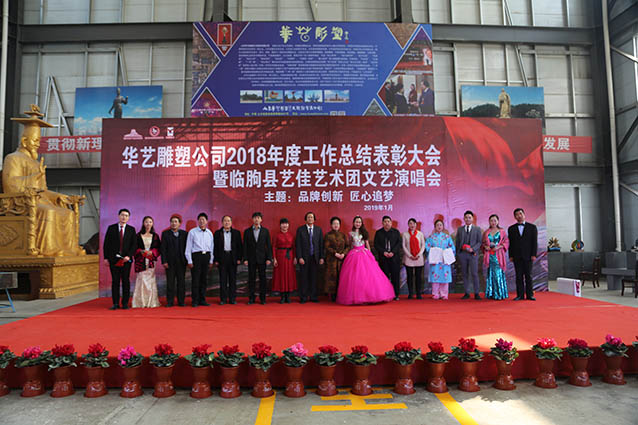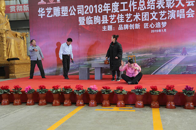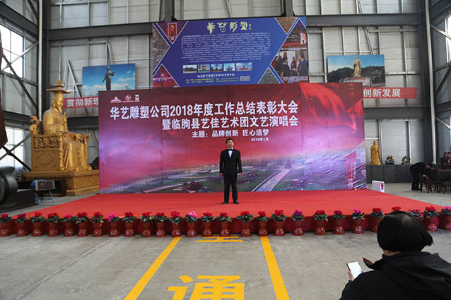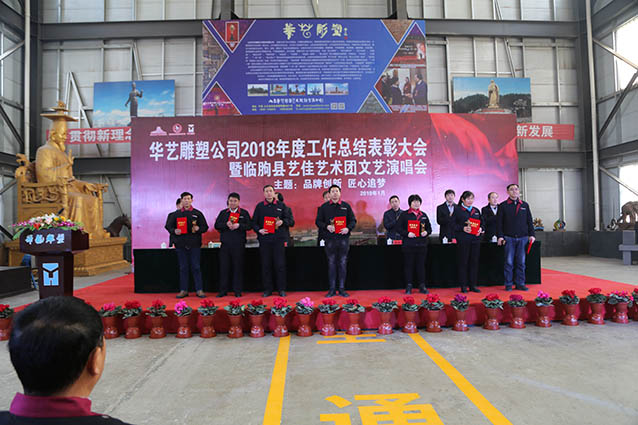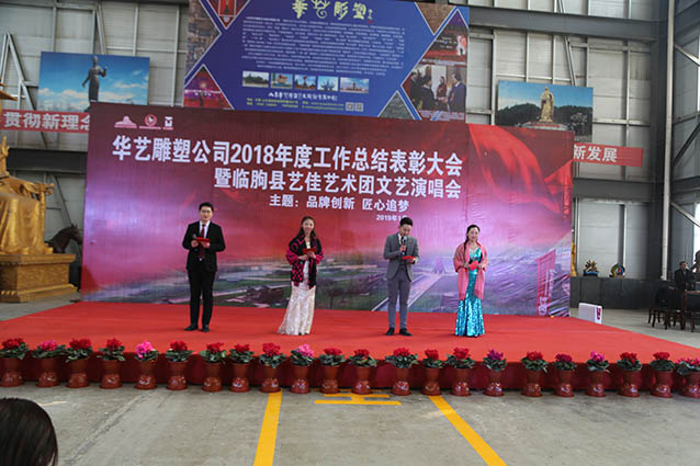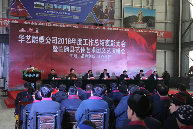 2019年1月10日,华艺安博买球公司2018年度工作总结表彰大会暨临朐县艺佳艺术团文艺演唱会,在华艺安博买球造型车间隆重举行,临朐县城关街办党工委副书记尹德忠、副主任张铭钦等领导参加,傅绍相董事长做了“品牌创新·匠心追梦”的2018年工作报告,会议中对先进集体、先进个人、华艺工匠进行了表彰和奖励,临朐县艺佳艺术团演出了精彩的文艺节目。大会在欢歌笑语中闭幕。