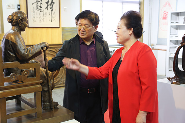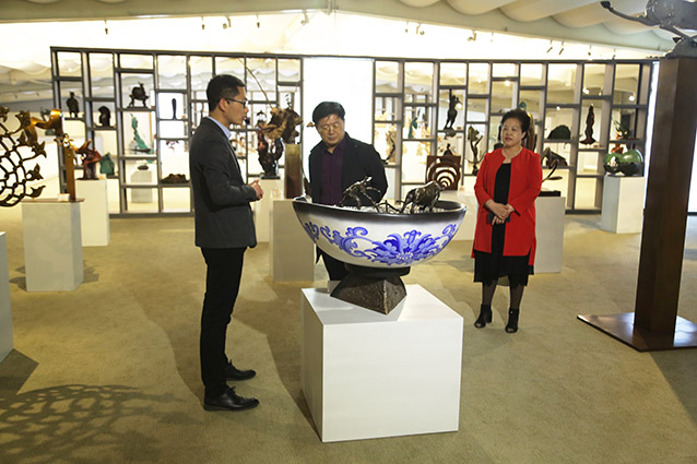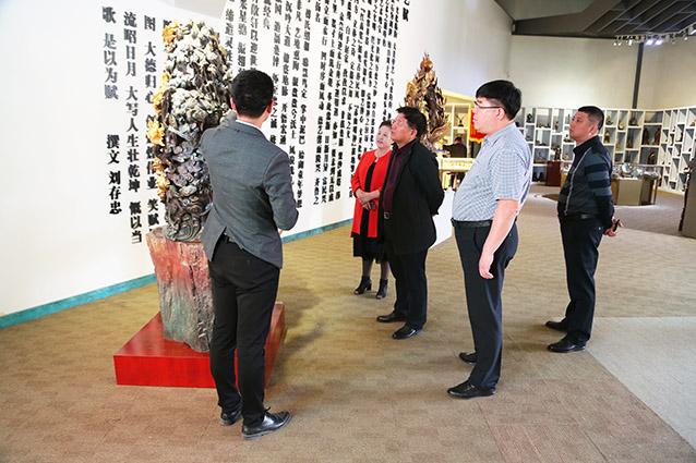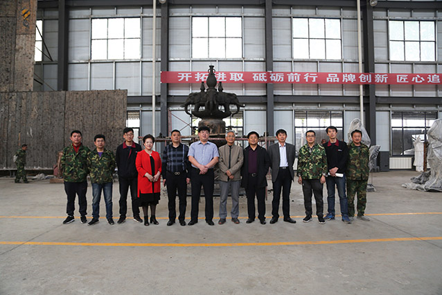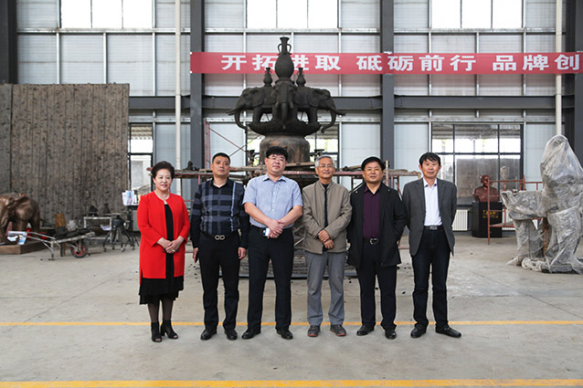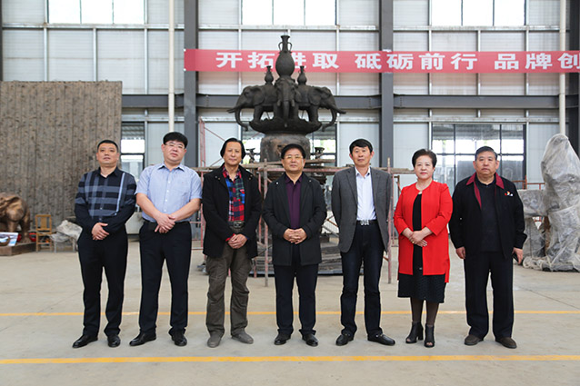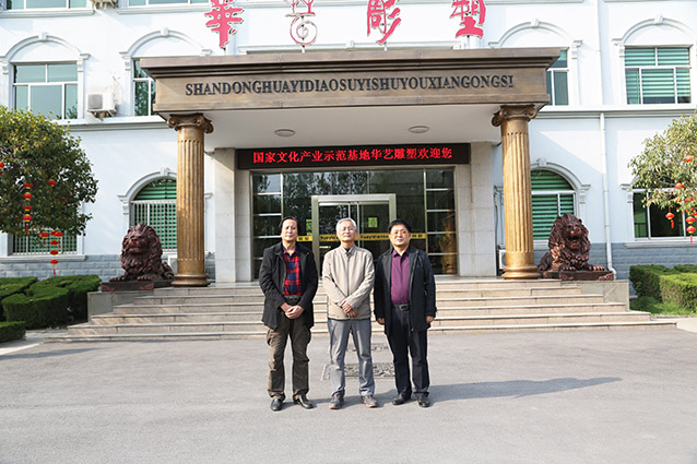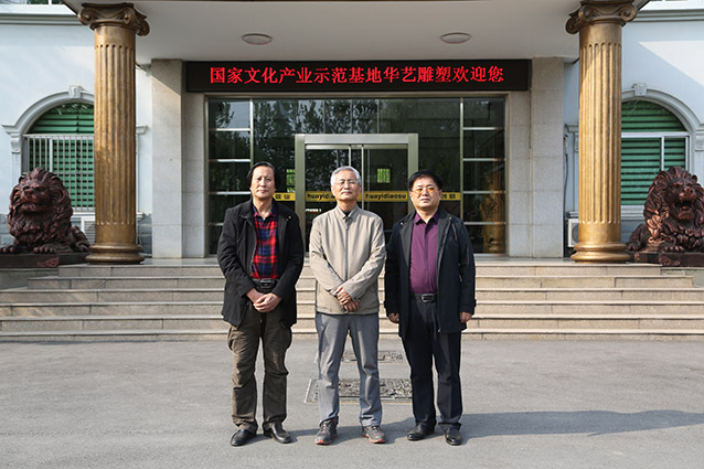 2019年4月19日、威海赤山集团王善强书记、副总经理郭健等领导一行来华艺洽谈业务及泥塑造型审稿。安博买球家李友生教授一同参加审稿活动。