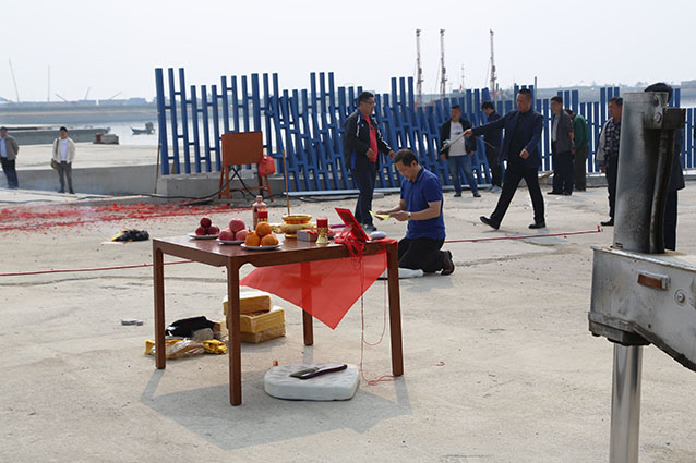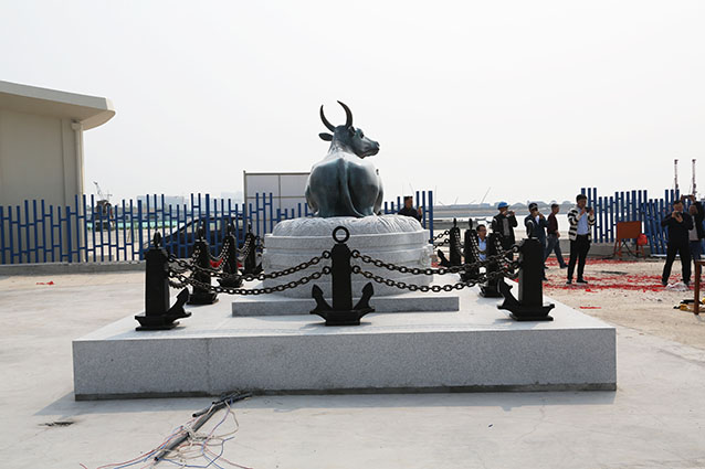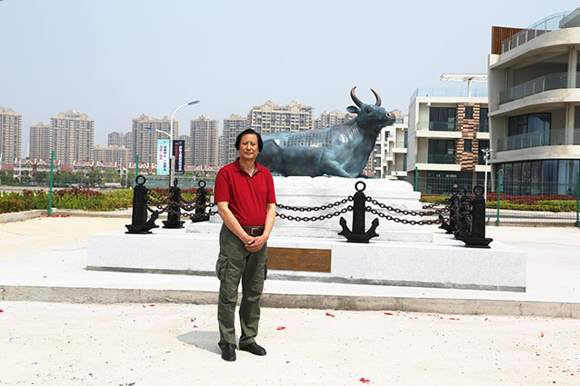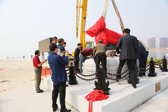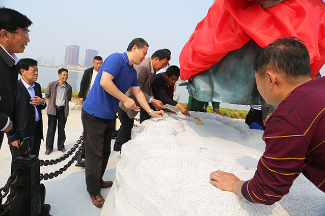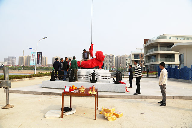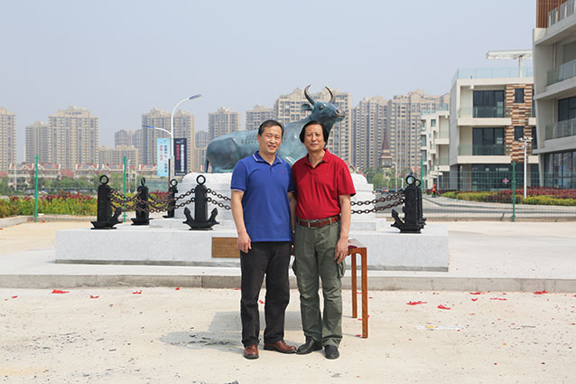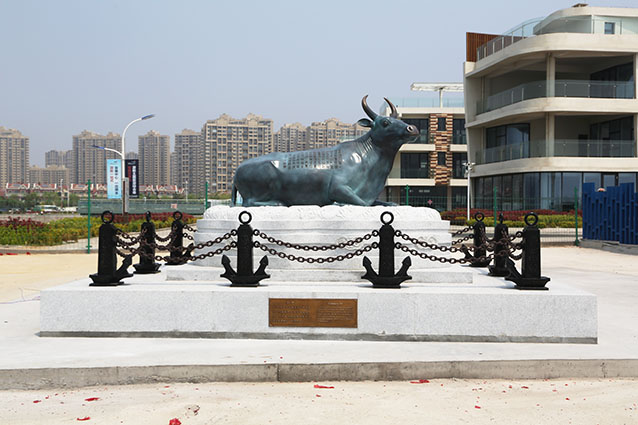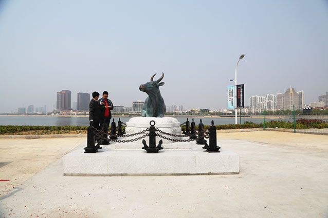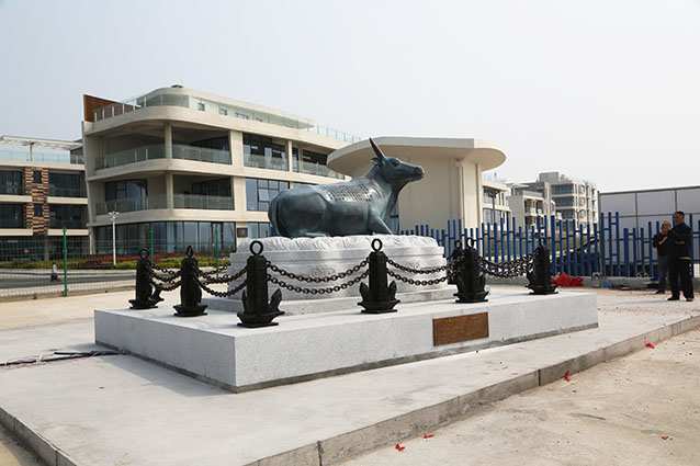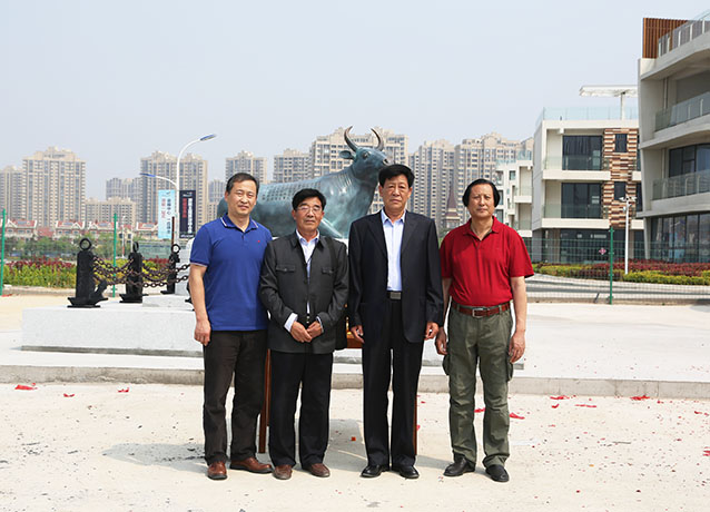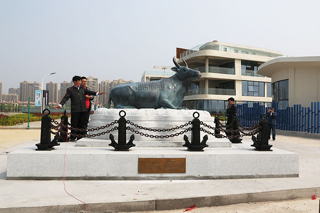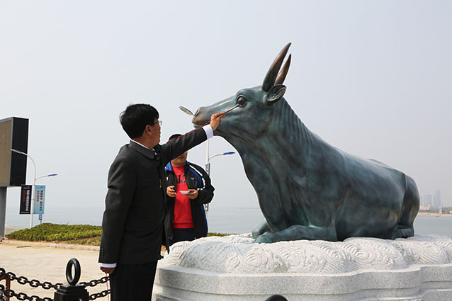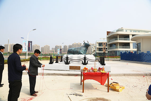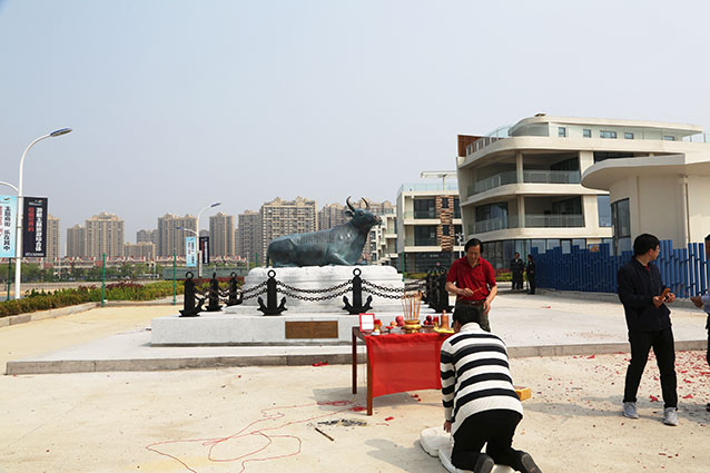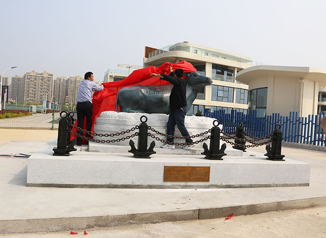 2019年5月12日,由华艺安博买球精心加工制作的青岛明天集团的金牛在胶南青岛国际游艇中心码头隆重安装,周易大师魏本初指导安装并做法事活动,傅绍相董事长、青岛明天集团赵宝明董事长、徐德勇书记等领导一同参加安装活动,金牛铜雕在鞭炮声中落座。精湛的石雕底座及精美的铜牛得到了明天集团领导的高度赞誉,该铜牛为国际游艇中心增添了一道靓丽的风景线。