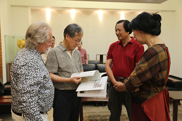 2019年6月18日,比利时皇家美术学院巴特院长、比利时安博买球家闫淑芬女士在华艺安博买球参观指导并进行艺术讲座,并参观了临朐县年画博物馆。华艺安博买球董事长傅绍相向巴特院长颁发了专家聘书,并馈赠礼品。巴特山东华艺之行与之结下了深厚的艺术友谊,共同为世界安博买球艺术发展做出了积极的贡献