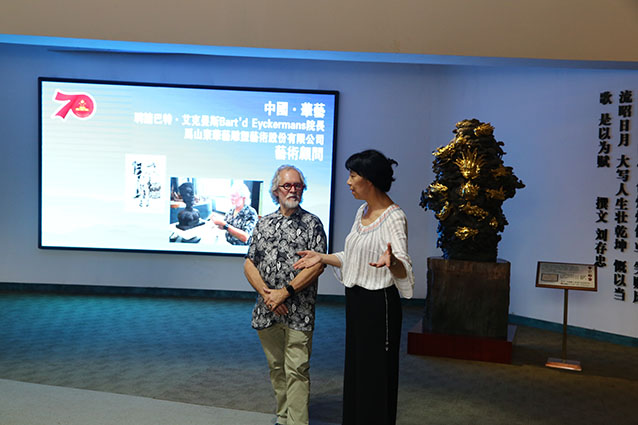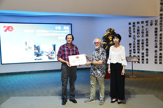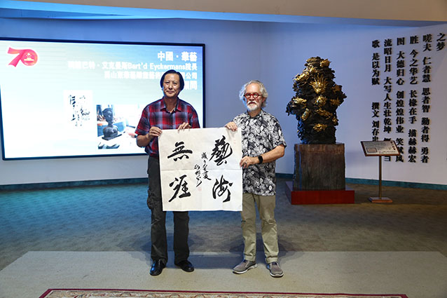 2019年6月18日,比利时皇家美术学院巴特院长、比利时安博买球家闫淑芬女士在华艺安博买球参观指导并进行艺术讲座,并参观了临朐县年画博物馆。华艺安博买球董事长傅绍相向巴特院长颁发了专家聘书,并馈赠礼品。巴特山东华艺之行与之结下了深厚的艺术友谊,共同为世界安博买球艺术发展做出了积极的贡献
