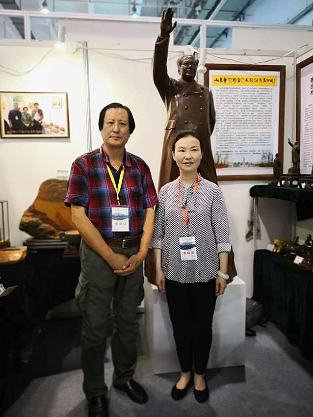 2019年6月21日,2019中国(青岛)工艺美术博览会暨文化旅游商品交易会在青岛会展中心隆重开幕。青岛市委常委副市长王家新、中国工艺美术集团副总经理张红等领导出席会议。华艺安博买球精选作品参展,其中毛泽东铜像《为人民服务》荣获2019中国(青岛)工艺美术博览会暨文化旅游商品交易会金奖,傅绍相董事长出席博览会