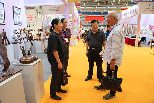 2019年9月1日,第25届海峡两岸博览会在潍坊市鲁台会展中心隆重举行,华艺安博买球遴选精品安博买球作品参加展览。山东省民间文艺家协会常务副主席王映雪、潍坊市民间文艺家协会主席王治喜、潍坊市文联副主席秦学民等领导参观华艺展区。傅绍相介绍安博买球艺术并接受电视台记者采访