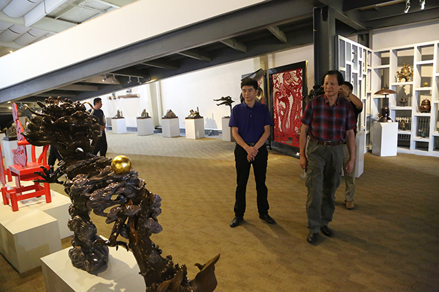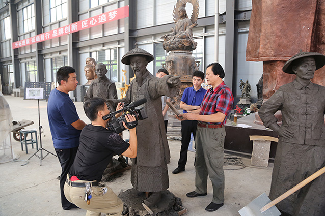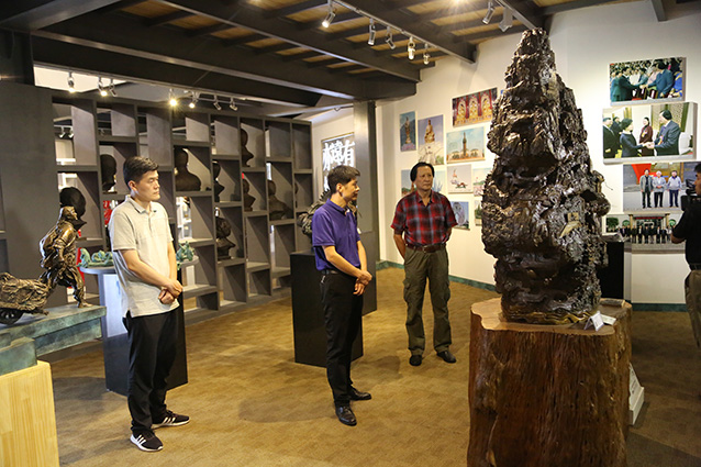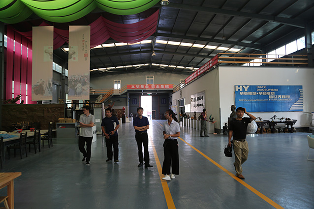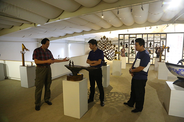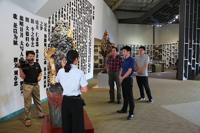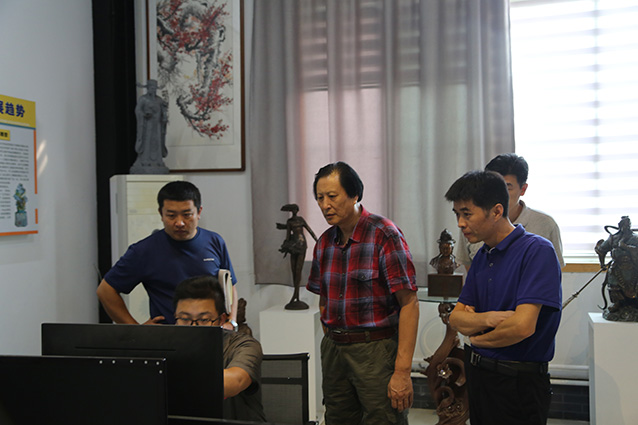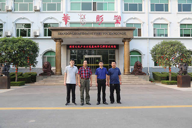 2019年9月6日,邹平魏桥集团张处长一行来华艺安博买球考察,洽谈合作张士平雕像事宜,傅绍相向客人介绍安博买球艺术