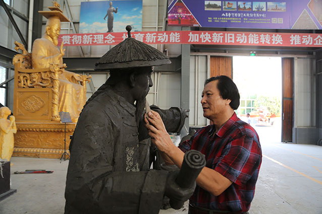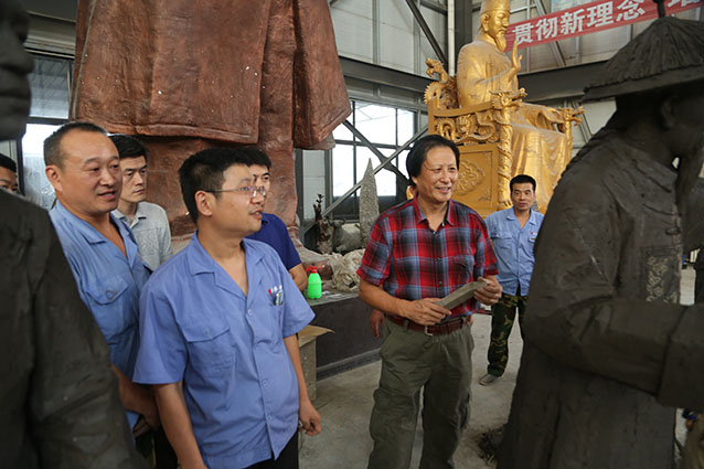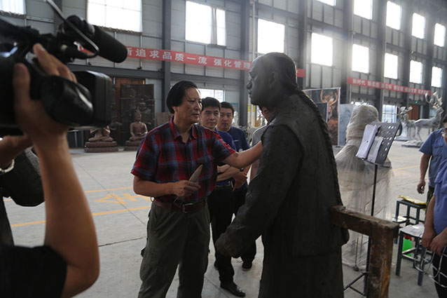 2019年9月6日,邹平魏桥集团张处长一行来华艺安博买球考察,洽谈合作张士平雕像事宜,傅绍相向客人介绍安博买球艺术