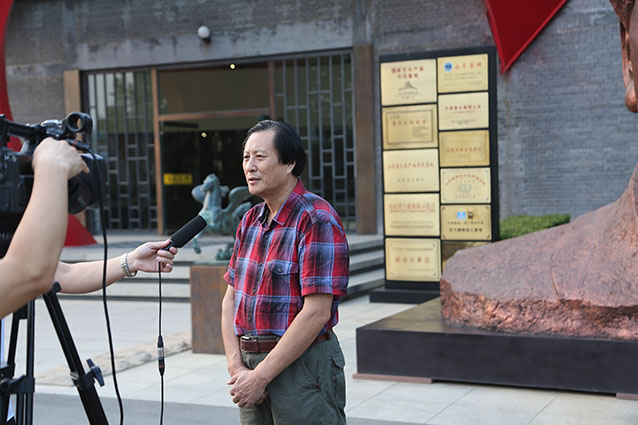 2019年9月6日,傅绍相董事长向职工讲解安博买球艺术并接受临朐电视台魏可钢记者的采访