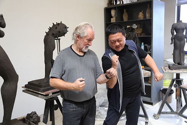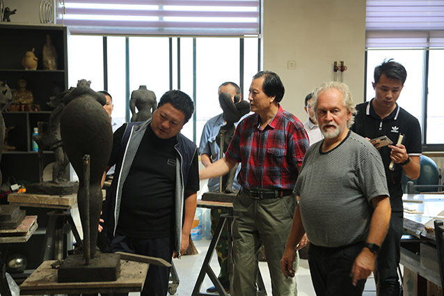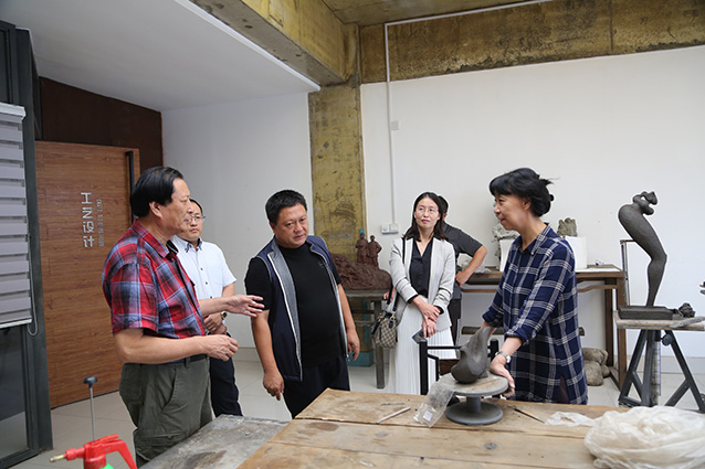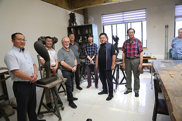 2019年9月25日,沂源桃花岛风景区总裁董方军、艺术顾问吴奎、潍坊艺术家梁文道、金江国际刘恩峰董事长来华艺安博买球参观指导,并与比利时安特卫普皇家美术学院院长巴特·艾克曼斯教授、比利时安博买球家闫淑芬教授、安博买球家李友生教授一同交流安博买球艺术。傅绍相董事长向嘉宾介绍了安博买球艺术