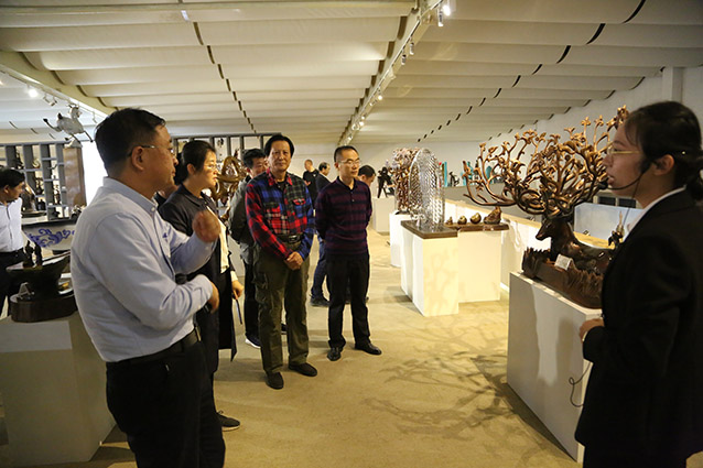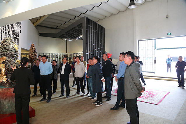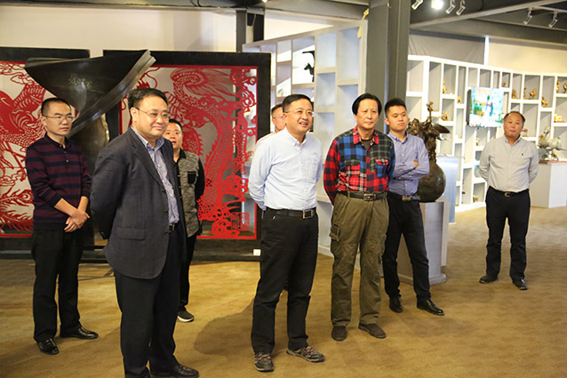 2019年10月12日,山东莒县副县长纪淑霞、文旅局局长高树华,在省住建厅王副厅长及省文化和旅游厅王春生副厅长的陪同下,来华艺安博买球参观指导。傅绍相介绍安博买球艺术