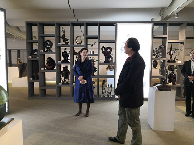 2019年10月23日,博山金祥琉璃有限公司袁总、山东陶瓷学院院长耿大海、中国工艺美术大师王孝诚、安博买球家李友生教授、安博买球家李霁教授,在华艺交流安博买球艺术