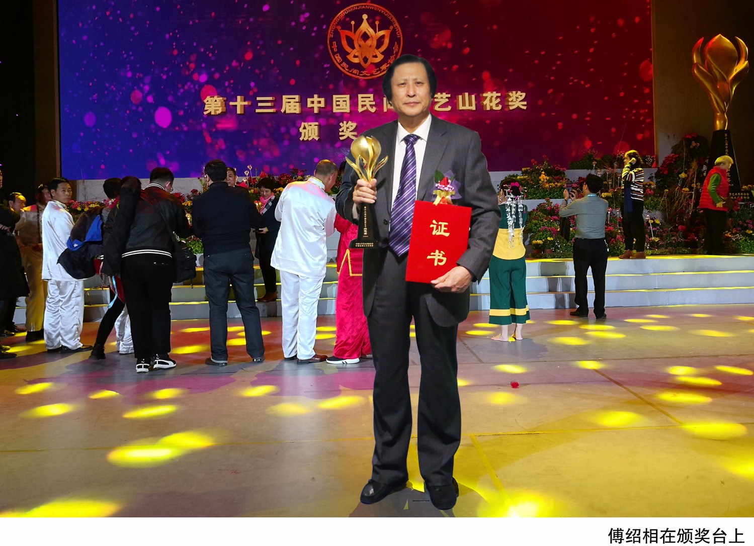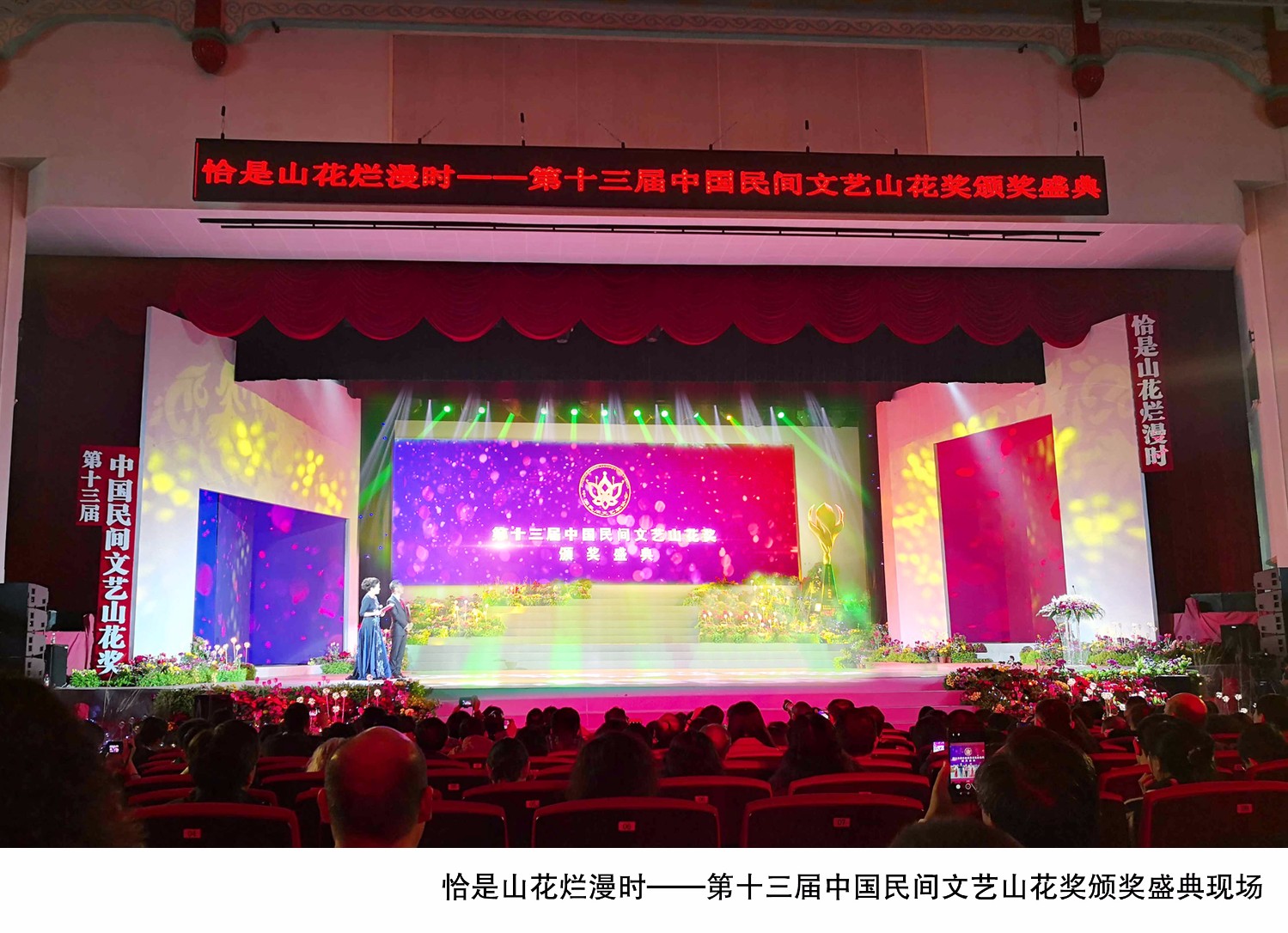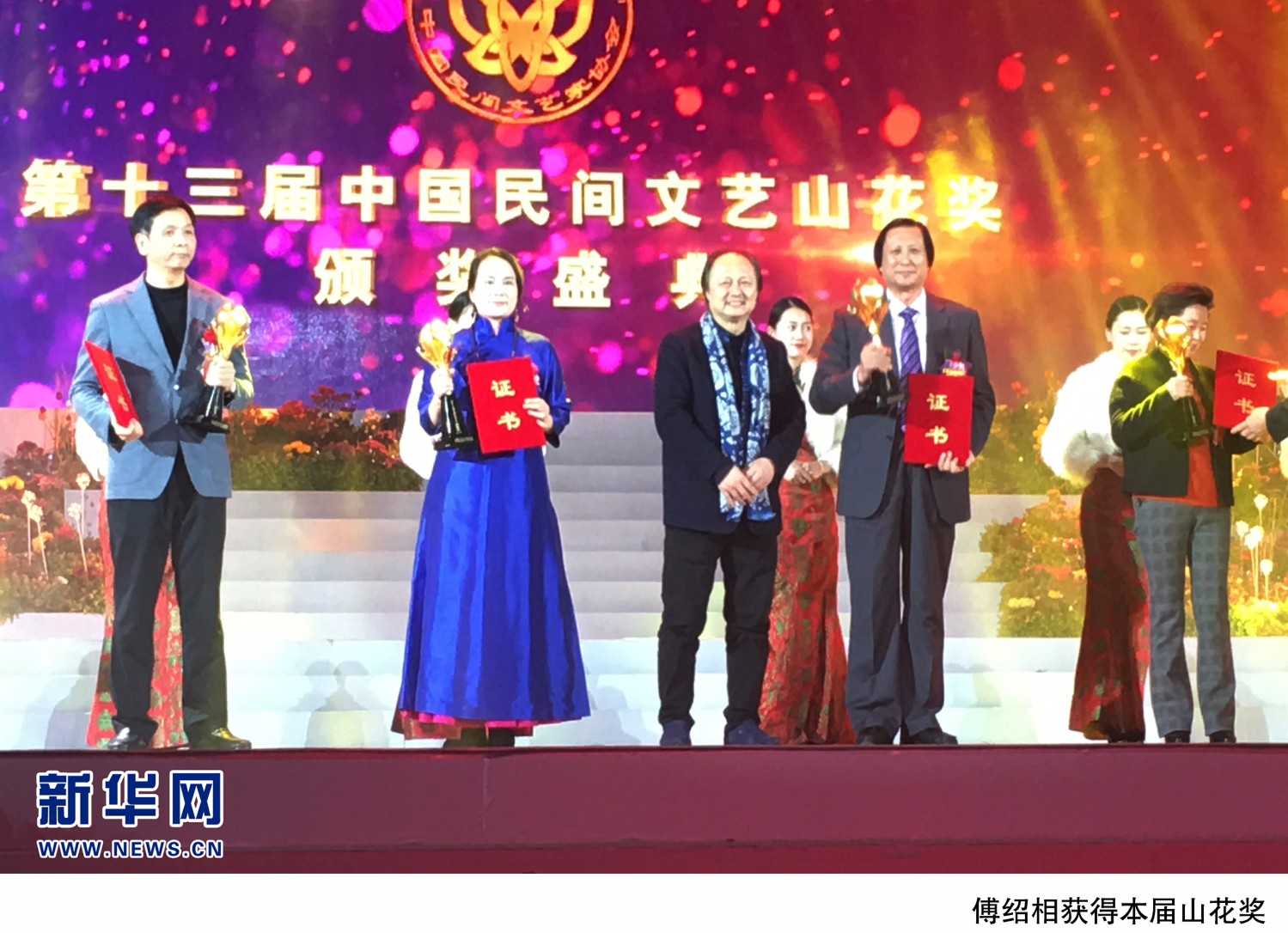 2020-4-25“恰是山花烂漫时”第十三届中国民间文艺“山花奖”颁奖盛典于2018年1月13日晚在广州中山纪念堂隆重举行。中共中央委员、中国文联主席、中国作协主席铁凝,中国文联党组成员、书记处书记陈建文,广东省委常委、宣传部部长慎海雄,中国文联副主席、中国民协主席潘鲁生,中国民协分党组书记、驻会副主席邱运华,中国民协副主席马雄福、刘华、李丽娜、吴元新、沙马拉毅、程建军,中国民协分党组成员、副秘书长周燕屏、吕军,广东省文联党组书记程扬等领导和嘉宾与来自全国20个省、市、自治区的近500名民间艺术家及2000余名观众,共同见证了这一盛况。
