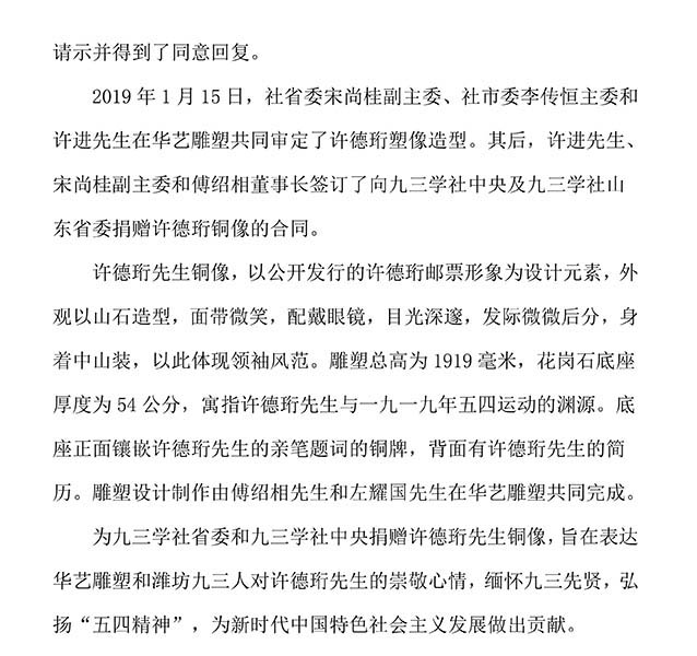 全国政协副主席、九三学社中央常务副主席邵鸿出席许德珩先生铜像落成揭幕仪式