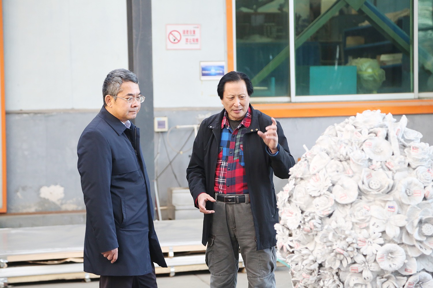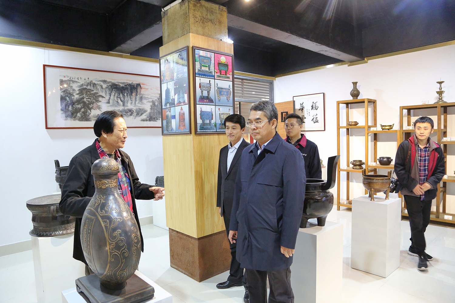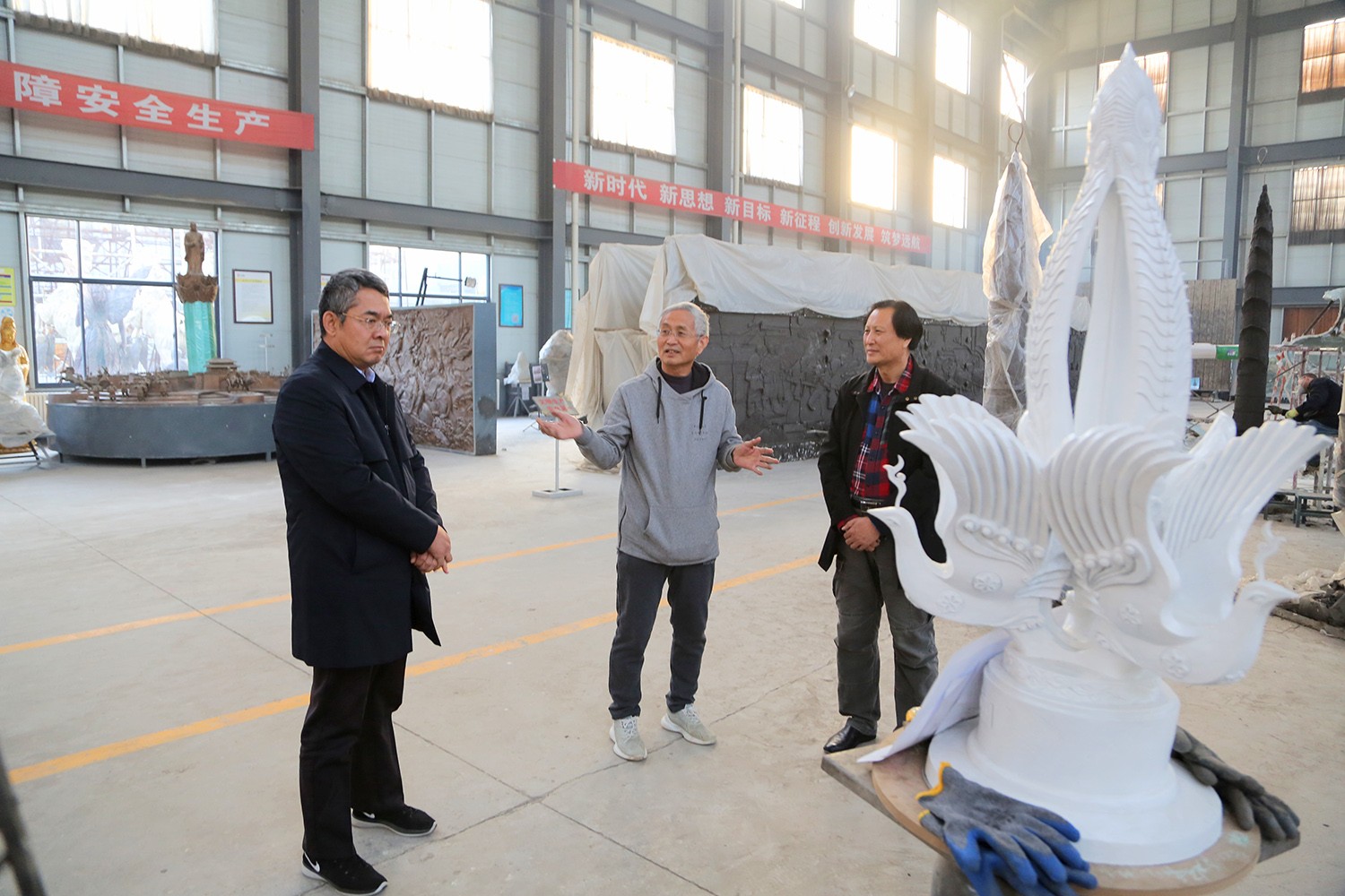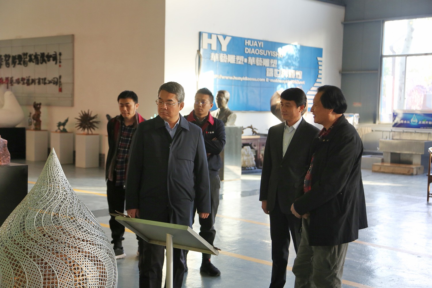 2019年11月14日,临朐县委书记杜建华、临朐县人民政府副县长王锡利专程来华艺安博买球调研安博买球艺术。