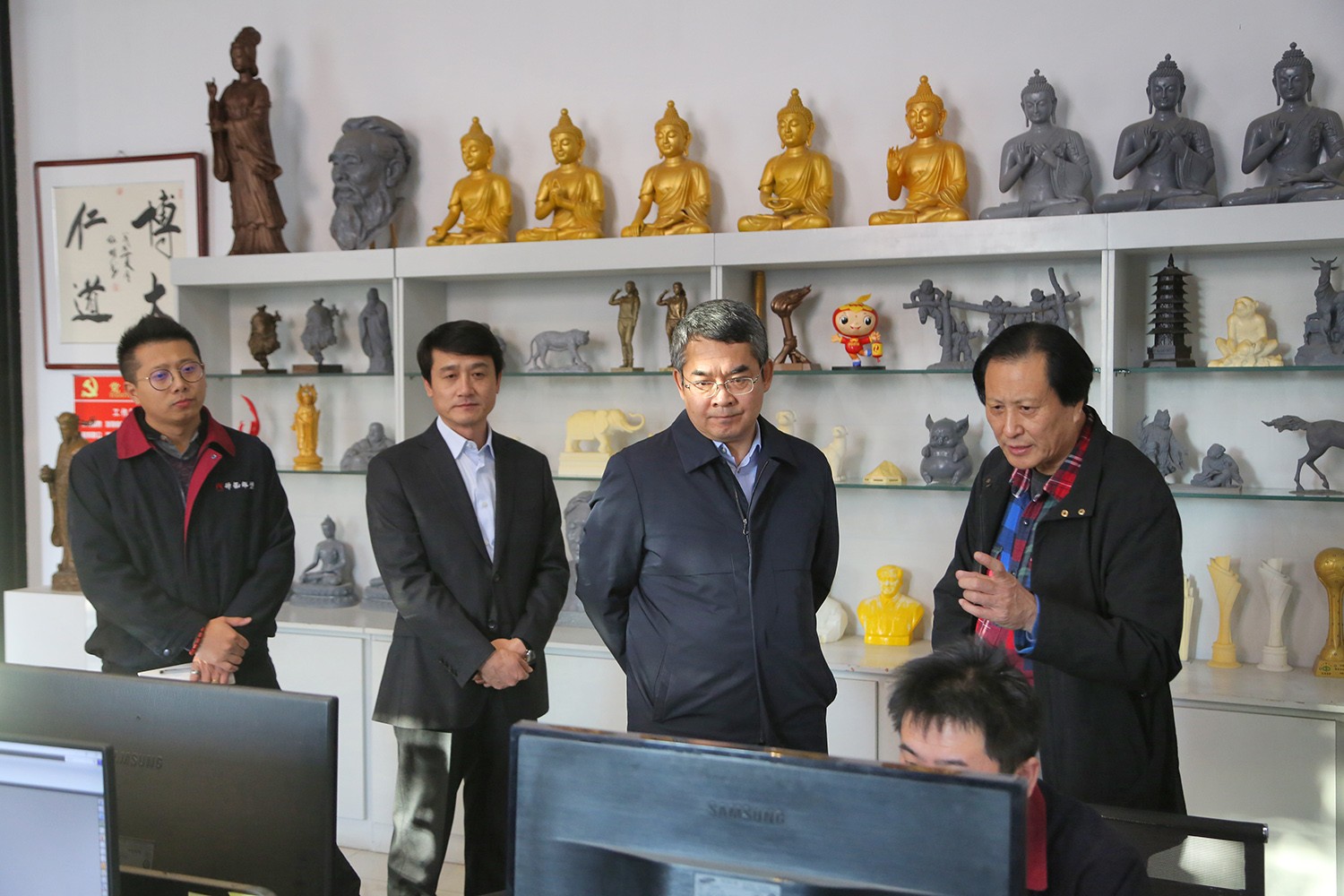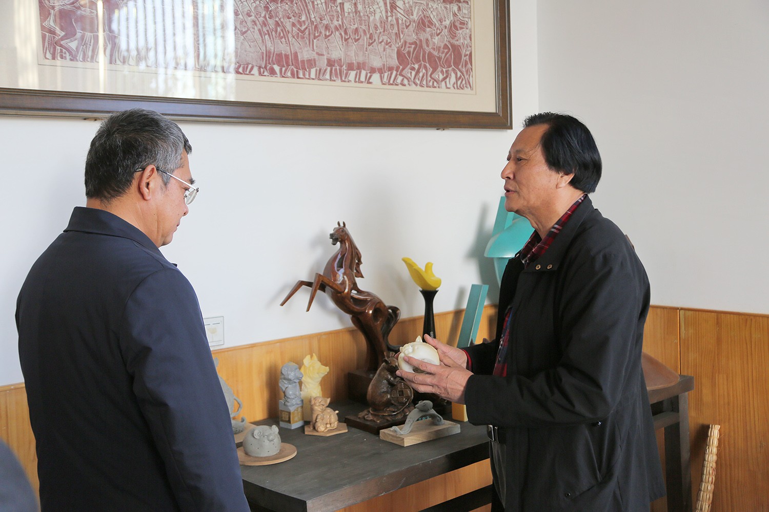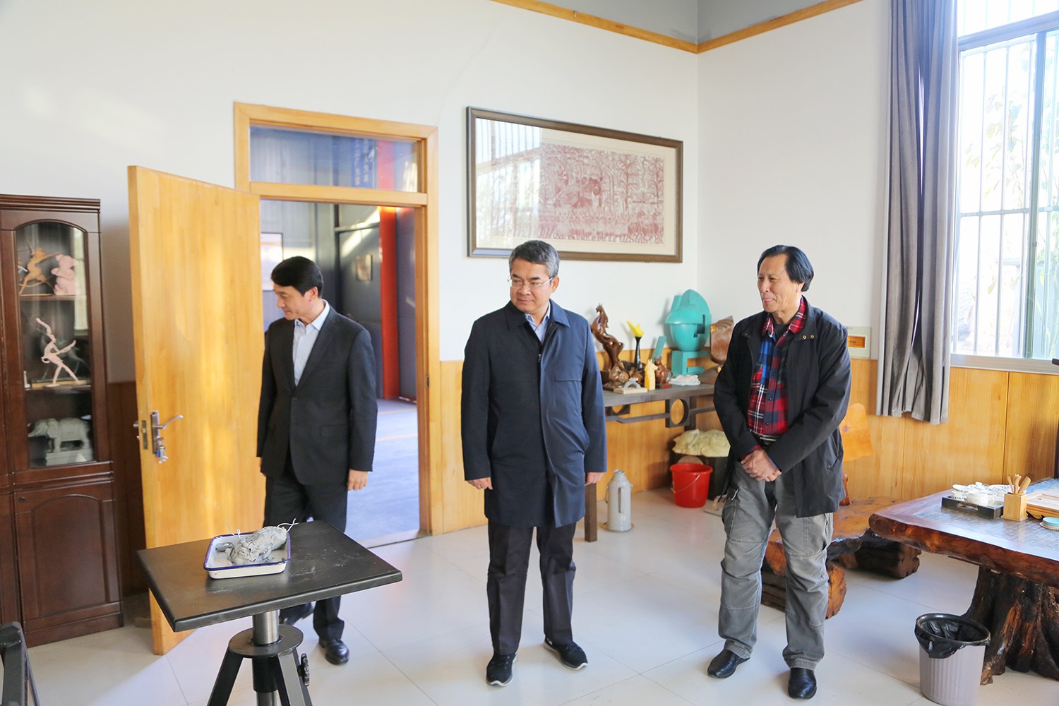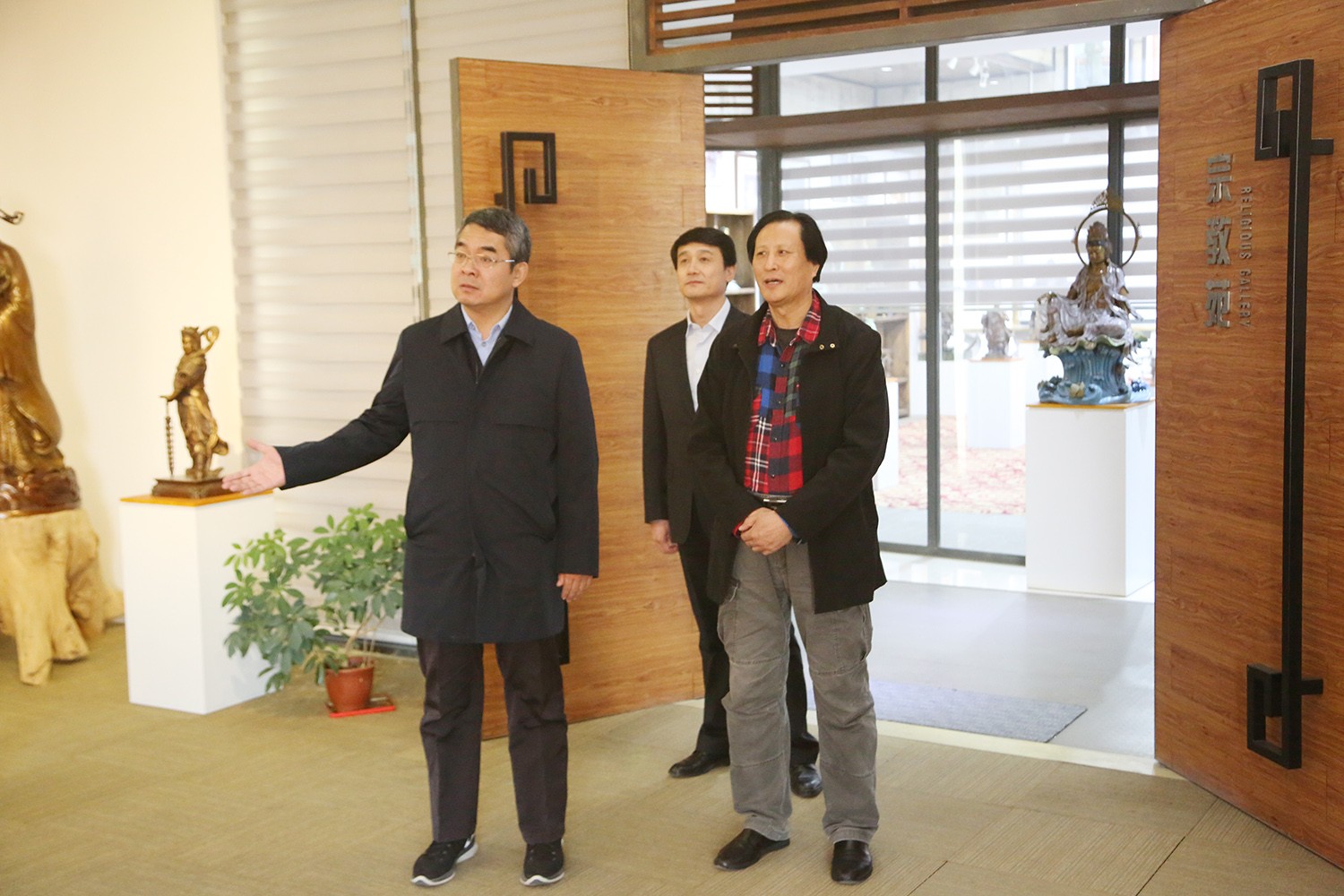 2019年11月14日,临朐县委书记杜建华、临朐县人民政府副县长王锡利专程来华艺安博买球调研安博买球艺术。