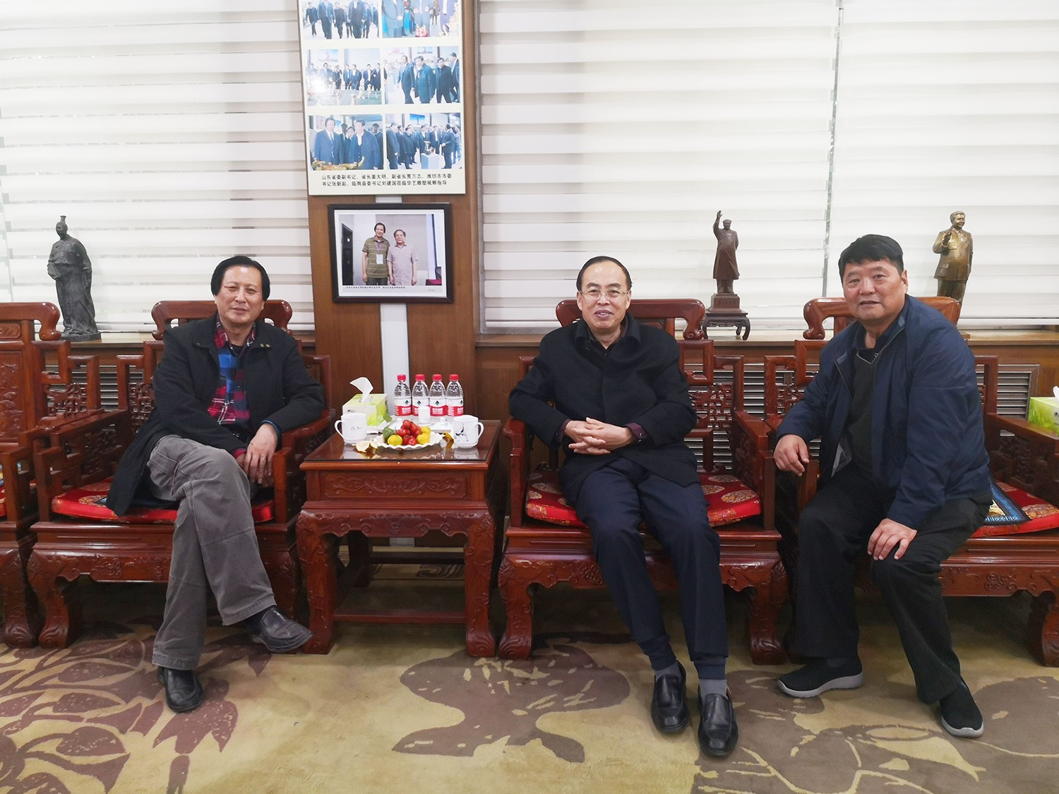 2019年11月14日,临朐县委书记杜建华、临朐县人民政府副县长王锡利专程来华艺安博买球调研安博买球艺术。